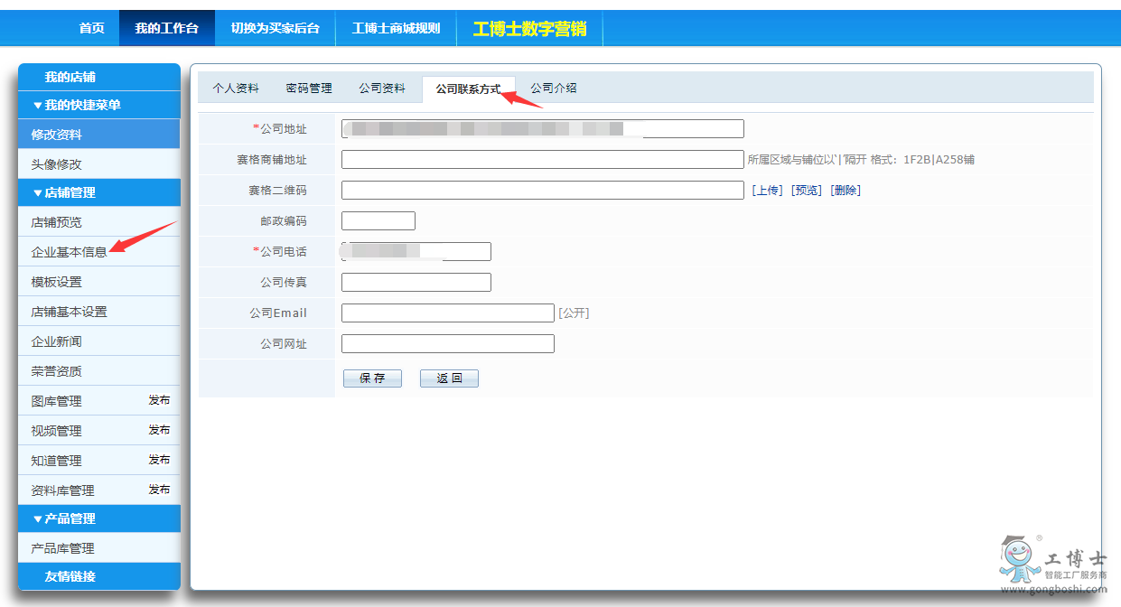 1.商家登陸店鋪后臺(tái)后,在左側(cè)找到【企業(yè)基本信息】,點(diǎn)擊【公司聯(lián)系方式】即可修改公司聯(lián)系方式。