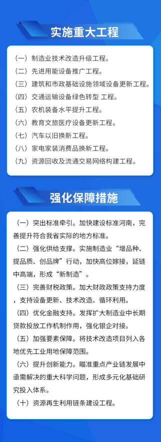 近日,河南省政府重磅發(fā)布《河南省推動(dòng)大規(guī)模設(shè)備更新和消費(fèi)品以舊換新實(shí)施方案》。其總體目標(biāo)是:到2027年,全省多個(gè)領(lǐng)域的設(shè)備投資規(guī)模要比2023年增長(zhǎng)25%以上。