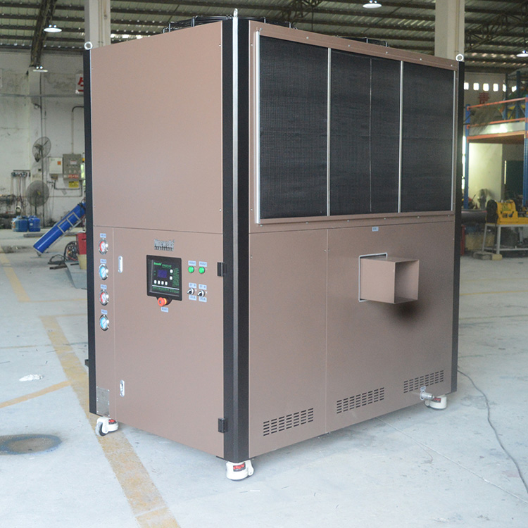 根據(jù)制冷系統(tǒng)原理:低溫低壓的液態(tài)冷媒在蒸發(fā)器與流入蒸發(fā)器里的空氣進(jìn)行熱交換,蒸發(fā)器吸收空氣中的熱量,蒸發(fā)過程中冷媒溫度不變,液態(tài)冷媒蒸發(fā)為低溫低壓氣態(tài)的冷媒進(jìn)入到壓縮機(jī),經(jīng)壓縮機(jī)壓縮,被壓縮成高溫高壓的氣態(tài),然后進(jìn)入冷凝器,在冷凝器里與散熱風(fēng)機(jī)抽放的自然風(fēng)進(jìn)行熱交換,將高溫高壓的冷媒的熱量排出機(jī)外,冷變流出冷凝器經(jīng)過干燥過濾器,將蒸發(fā)過程中冷媒所含的水分或其它雜質(zhì)過濾,然后進(jìn)入膨脹閥節(jié)流,膨脹節(jié)流制冷,冷媒變成低溫低壓的液態(tài),此過程后的冷媒再進(jìn)入到蒸發(fā)器進(jìn)行換熱蒸發(fā),從而實(shí)現(xiàn)制冷系統(tǒng)的整個(gè)過程,這種循環(huán)是連續(xù)進(jìn)行的,水才得以連續(xù)不斷的制冷,再通過風(fēng)機(jī)把冷氣從頭風(fēng)口送入所需要降溫的目的地。