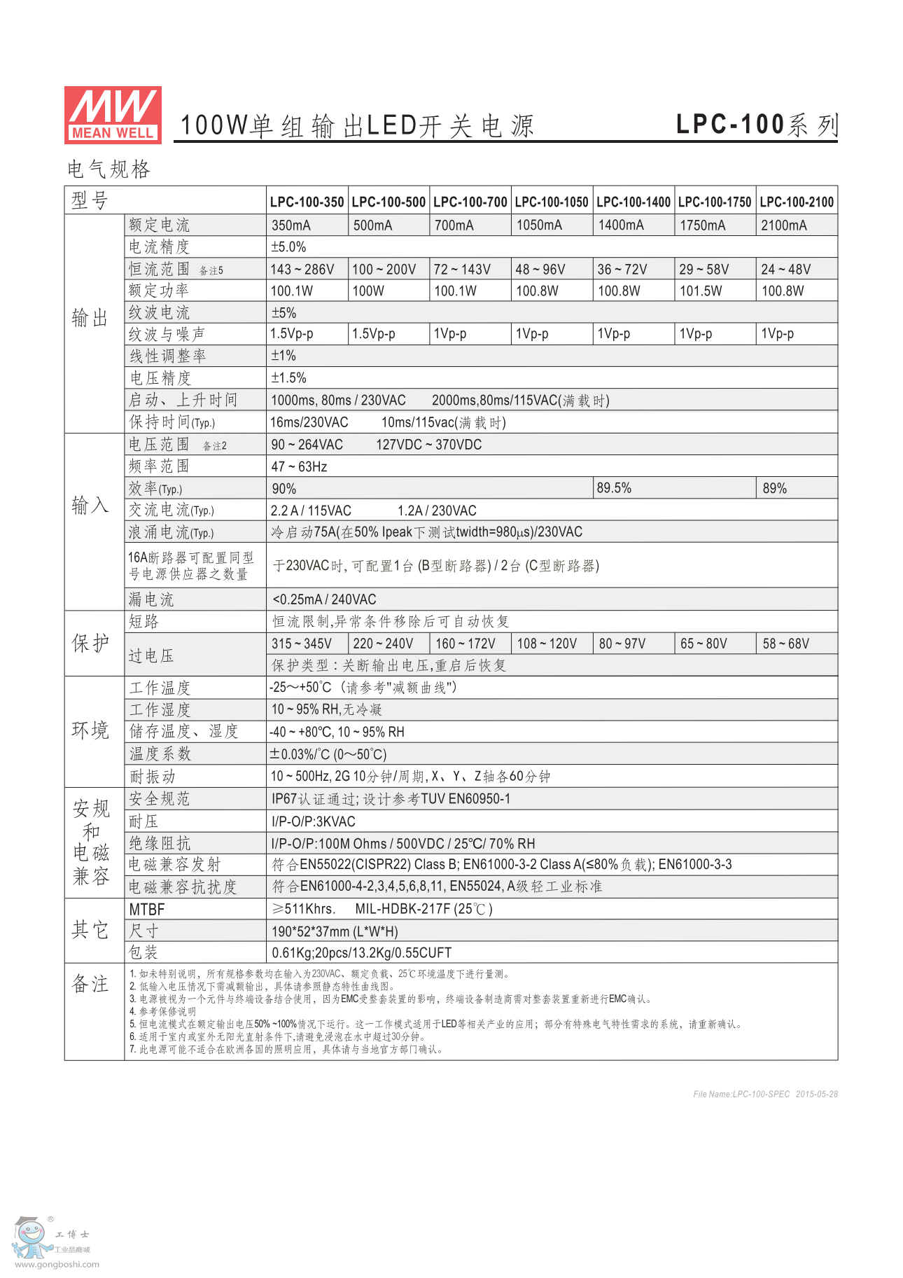 meanwell明緯LED開關(guān)電源LPC-100-350 |