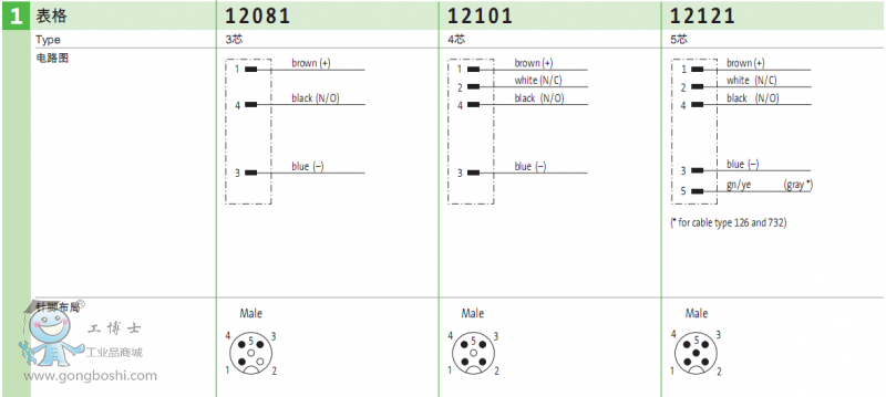 第1組數(shù)字 連接器類型 12401 代表M12母頭90°配LED指示燈,4針
