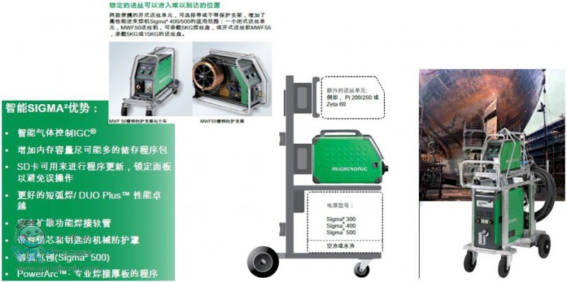 米加尼克的Sigma2 焊機(jī)是廣受歡迎的Sigma焊機(jī)系列(包括300、400、500A的機(jī)型)的第二代產(chǎn)品。現(xiàn)有的型號(hào)是C(一體機(jī))和S(分體機(jī))并且各自有4種控制面板可供選擇。可以選用脈沖功能和各項(xiàng)參數(shù)可調(diào)節(jié)功能,Sigma 的設(shè)計(jì)面向高端,適合MIG/MAG焊接各種金屬材料,適合在貿(mào)易、裝配、重工業(yè)、船廠和汽車行業(yè)中使用。