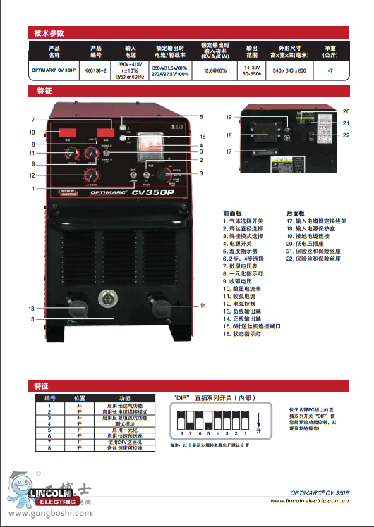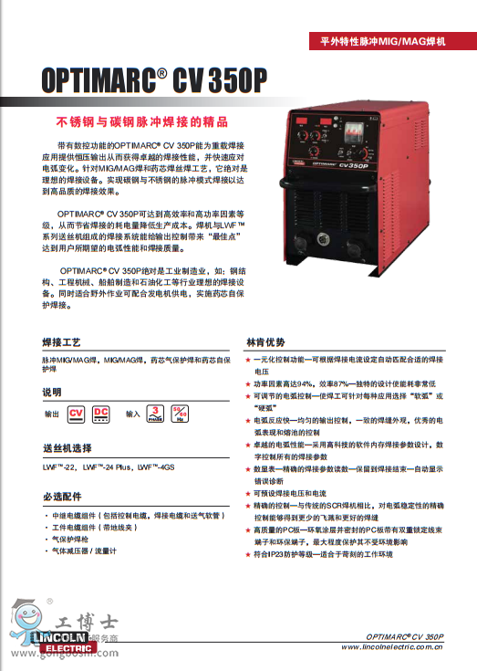 美國林肯CV 350P脈沖無飛濺氣保焊機(jī)