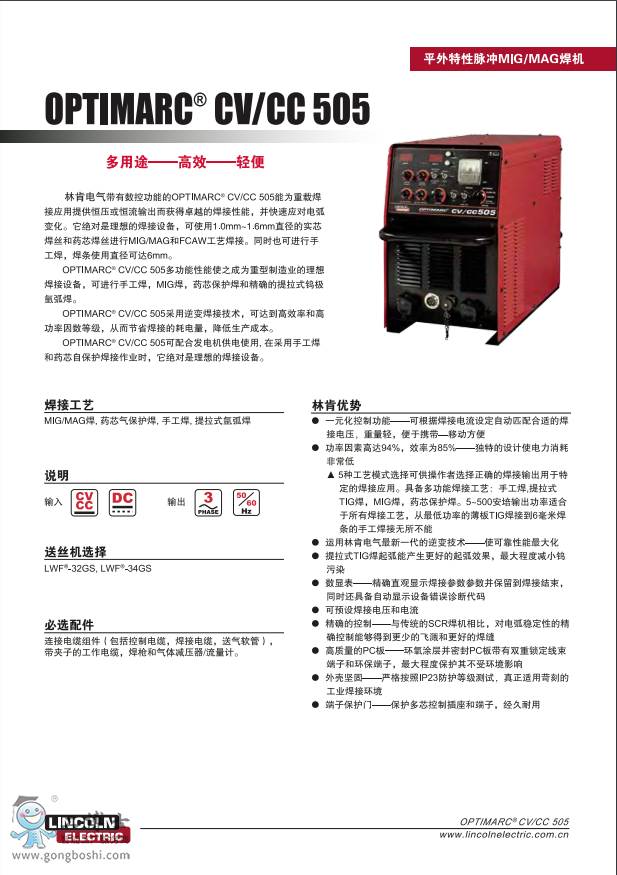 林肯多功能氣保焊機CV/CC 505半自動氣保焊機