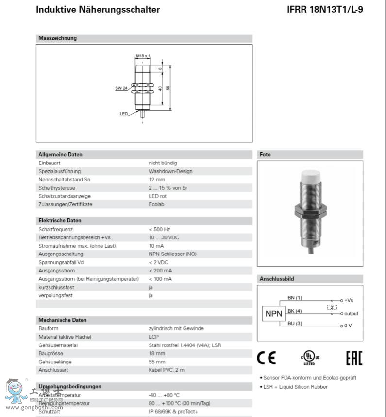 IFRR 18P33T1/L-9堡盟傳感器Baumer電感式接近開關(guān)傳感器 |
