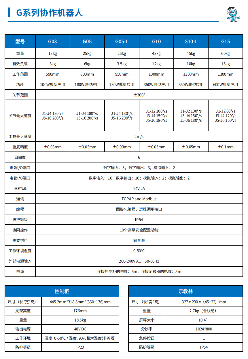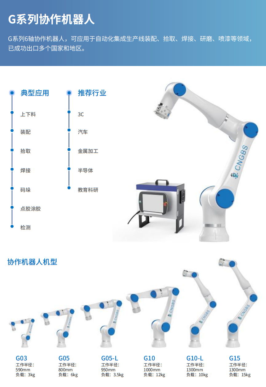 工博士協(xié)作機器人G系列 G03 負載:6kg 臂展:800mm |