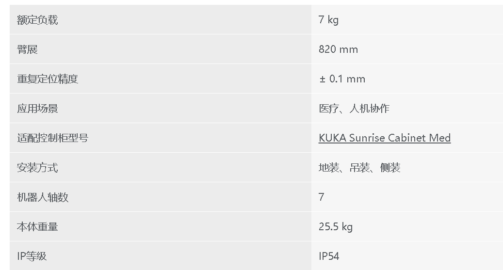 庫卡機(jī)器LBR Med 14 R820人負(fù)載14 kg臂展820 mm
