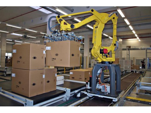 塑料筐柑橘智能碼垛機(jī)器人輸送碼垛全自動(dòng)生產(chǎn)線(xiàn)